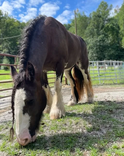 One of the most beloved residents of Misty Valley Farm is Charis (pronounced Care-is), our beautiful Gypsy horse. With her flowing mane and gentle spirit, Charis captures the heart of everyone who meets her. She loves attention, especially when visitors stop to say hello and spend a moment at her pasture. Charis is more than just a farm favorite, she is a symbol of grace and strength, embodying the quiet magic that makes Misty Valley so special.